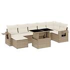 vidaXL Matgrupp för trädgården med dynor 8 delar beige konstrotting 3268058