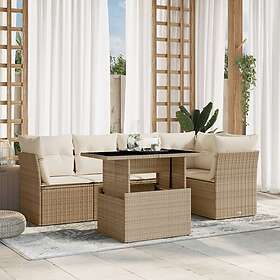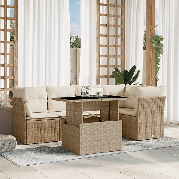 vidaXL Soffgrupp för trädgården med dynor 6 delar beige konstrotting 3266568