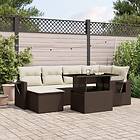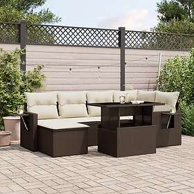 vidaXL Trädgårdssoffset med dynor 7 delar brun konstrotting 3268053