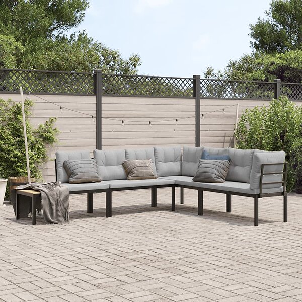 vidaXL Trädgårdsbänkar med dynor 4 delar svart pulverlackerat stål 3283646
