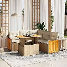 vidaXL Soffgrupp för trädgården med dynor 6 delar beige konstrotting 3273956