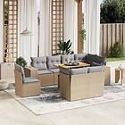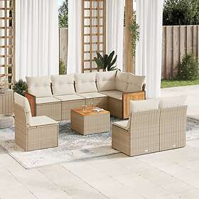 vidaXL Soffgrupp för trädgården med dynor 9 delar beige konstrotting 3272732