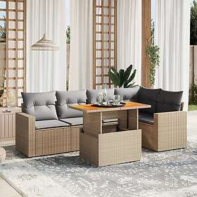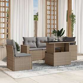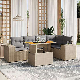 vidaXL Soffgrupp för trädgården med dynor 6 delar beige konstrotting 3273936