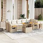 vidaXL Matgrupp för trädgården med dynor 8 delar beige konstrotting 3273431