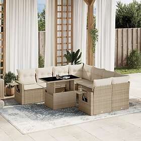 vidaXL Soffgrupp för trädgården med dynor 9 delar beige konstrotting 3267798