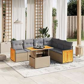 vidaXL Matgrupp för trädgården med dynor 7 delar beige konstrotting 3273978