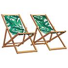 vidaXL Hopfällbara solstolar 2 st bladmönster tyg och massivt trä 3214500