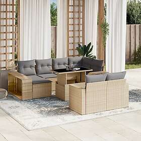 vidaXL Loungegrupp för trädgården m. dynor 11 delar beige konstrotting 3274582