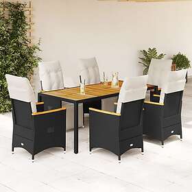 vidaXL Matgrupp för trädgården med dynor 7 delar svart konstrotting 3276963