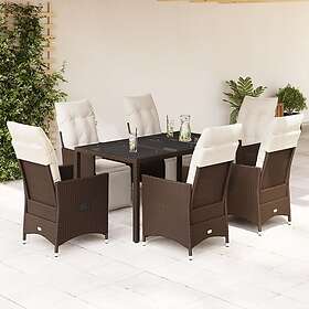 vidaXL Matgrupp för trädgården med dynor 7 delar brun konstrotting 3276918