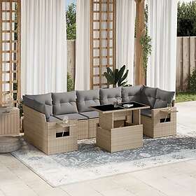 vidaXL Matgrupp för trädgården med dynor 8 delar beige konstrotting 3267779