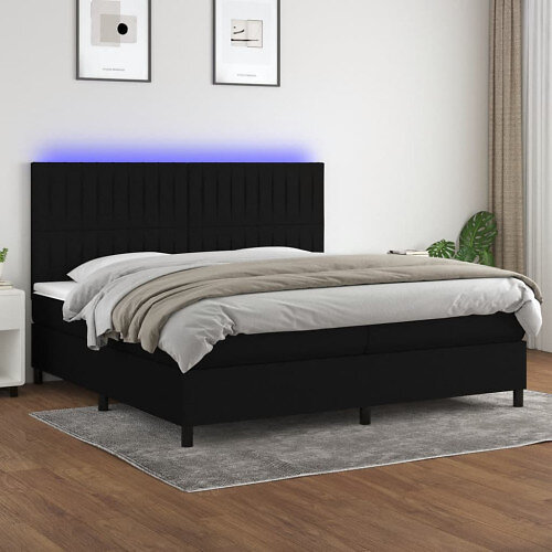 vidaXL Ramsäng med madrass & LED svart 200x200 cm tyg