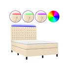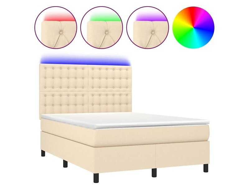 vidaXL Ramsäng med madrass & LED gräddvit 140x190 cm tyg