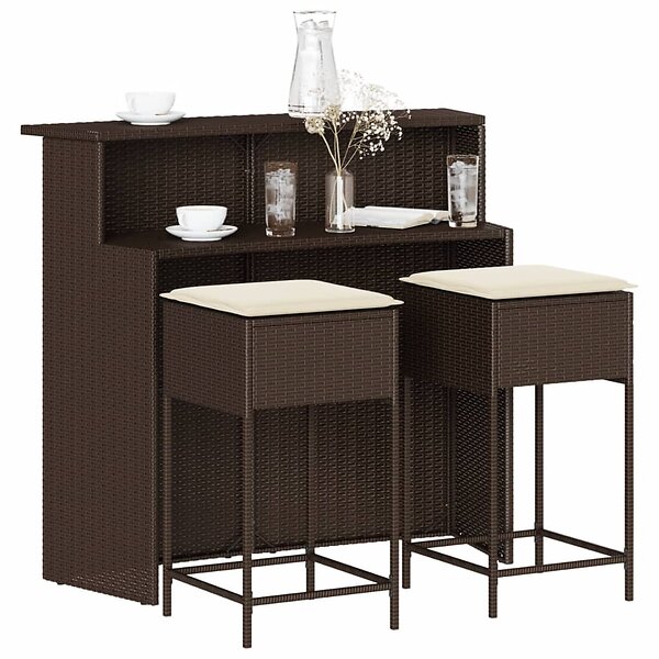 vidaXL Bargrupp för trädgården med dynor 3 delar brun konstrotting 3261484