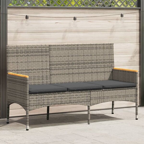 vidaXL Trädgårdsbänk 3-sits med kuddar grå konstrotting 365442