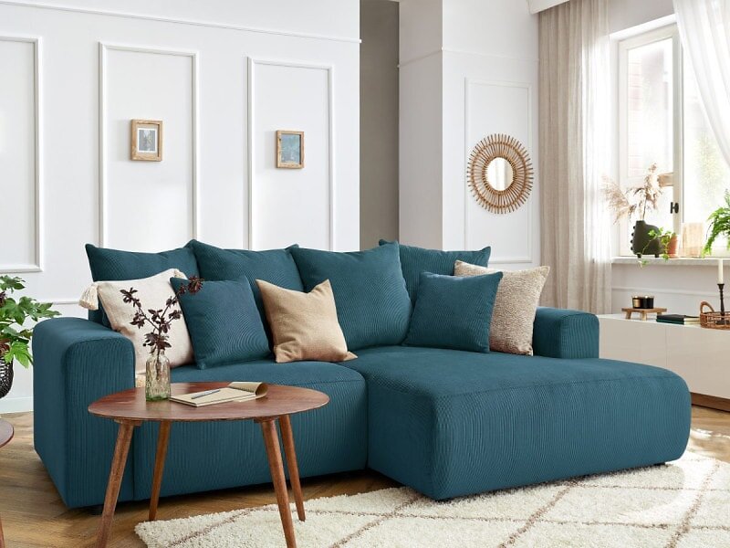 Bobochic Canapé d'angle fixe ENJOY Velours côtelé