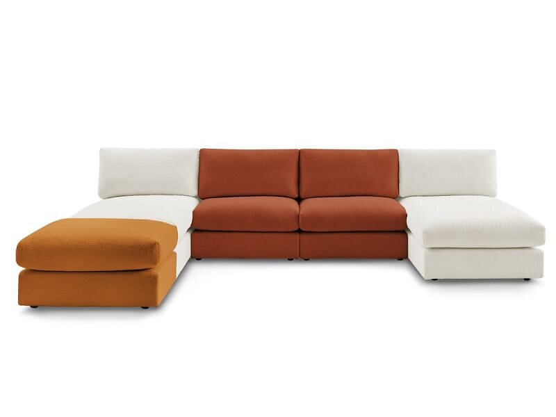 Bobochic Canapé panoramique fixe 100% modulable PARIS tissu bouclette avec 2 chauffeuses méridiennes 1 pouf
