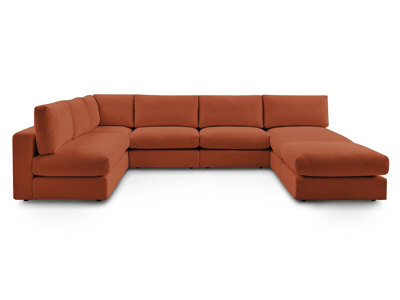 Bobochic Canapé d'angle fixe 100% modulable PARIS tissu bouclette 3 chauffeuses 1 méridienne angle pouf