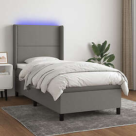 Ramsäng med madrass & LED mörkgrå 90x200 cm tyg