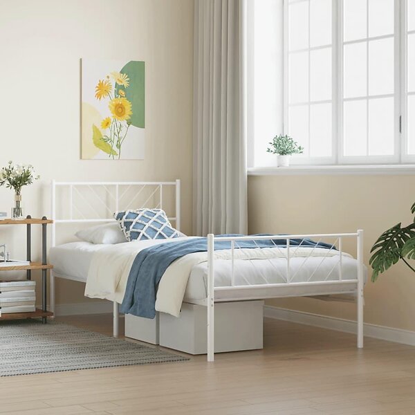 Sängram med huvudgavel och fotgavel vit metall 107x203 cm