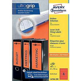 Avery Pärmetiketter självhäftande 192 x 61mm L4766-100 röd 400st