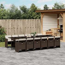 vidaXL Matgrupp för trädgården med dynor 17 delar brun konstrotting 3211545