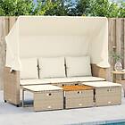 vidaXL Canapé de jardin 3 places avec toit et poufs beige polyrotin 365455