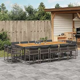 vidaXL Matgrupp för trädgården med dynor 15 delar grå konstrotting 3211598