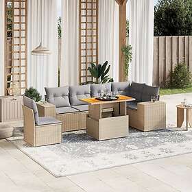 vidaXL Matgrupp för trädgården med dynor 7 delar beige konstrotting 3211456
