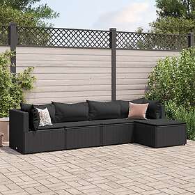 vidaXL Loungegrupp med dynor 5 delar konstrotting svart 3308059