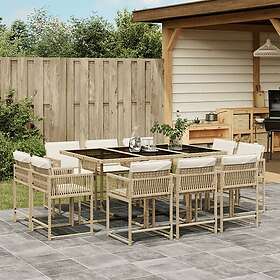 vidaXL Matgrupp för trädgården med dynor 11 delar beige konstrotting 3211570