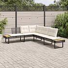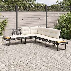 vidaXL Trädgårdssoffa med dynor L-formad svart konstrotting och akacia 365634