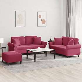 vidaXL Soffgrupp med kuddar 3 delar vinröd sammet 3202244