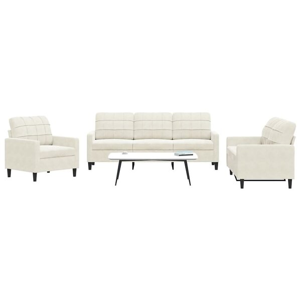 vidaXL Soffgrupp med dynor 3 delar gräddvit sammet 3278359