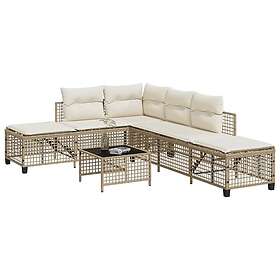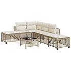vidaXL Hörnsoffa för trädgård med dynor 3 delar beige konstrotting 365447
