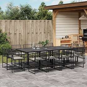 vidaXL Matgrupp för trädgården med dynor 17 delar konstrotting svart 3211782