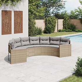 vidaXL Trädgårdssoffa med dynor beige halvrund konstrotting 3318515