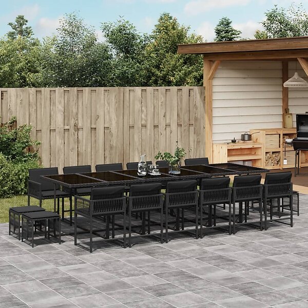 vidaXL Matgrupp för trädgården med dynor 17 delar konstrotting svart 3211543