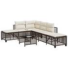 vidaXL Hörnsoffa för trädgård med dynor 3 delar brun konstrotting 365445