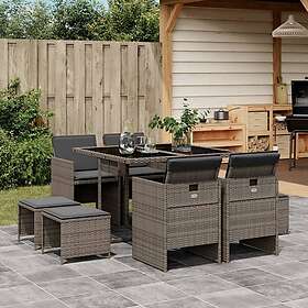 vidaXL Matgrupp för trädgården med dynor 9 delar grå konstrotting 3211556