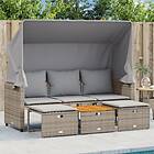 vidaXL Trädgårdssoffa 3-sits med tak och pallar grå konstrotting 365454
