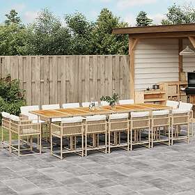 vidaXL Matgrupp för trädgården med dynor 17 delar beige konstrotting 3211612