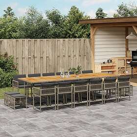 vidaXL Matgrupp för trädgården med dynor 17 delar grå konstrotting 3211550