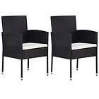 vidaXL Trädgårdsstolar med krämfärgade dynor 2 st svart konstrotting 318704