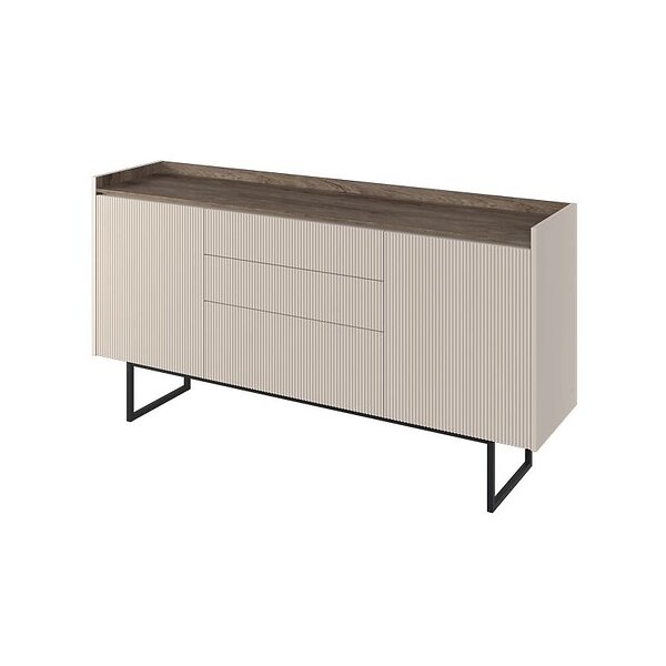 Bobochic Buffet 2 portes 166 cm LOUNA beige et effet bois avec tasseaux et LED