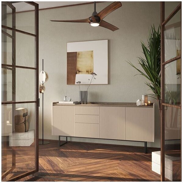 Bobochic Buffet 3 portes 192 cm LOUNA beige et effet bois avec tasseaux et LED