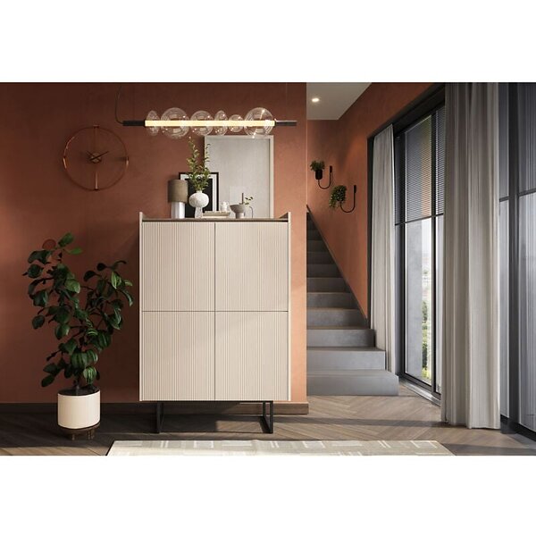 Bobochic Buffet haut 4 portes 98 cm LOUNA beige et effet bois avec tasseaux et LED