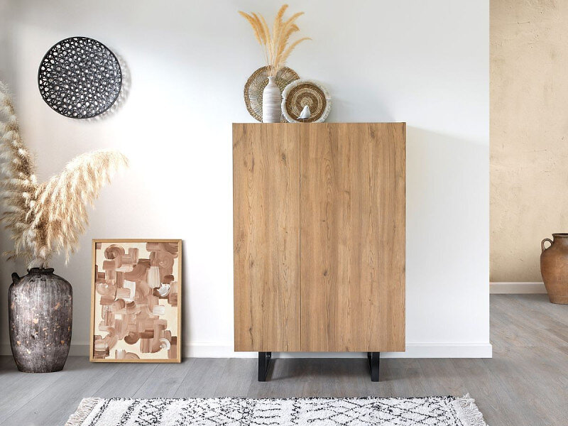 Bobochic Buffet haut 2 portes 90 cm OPERA effet chêne et imitation marbre noir