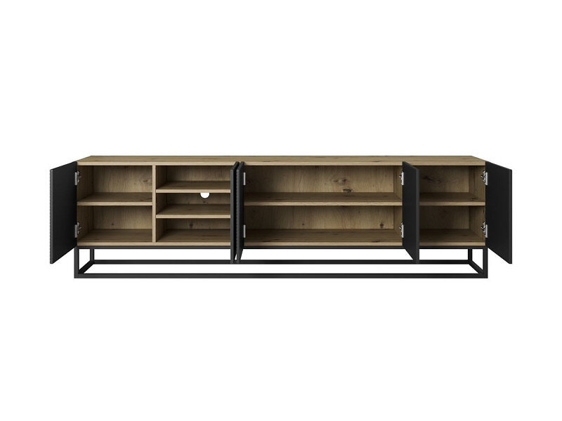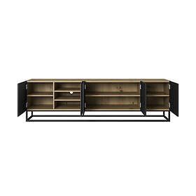 Bobochic Ensemble ALICE avec Meuble TV 200 cm Buffet 4 portes 200 cm pieds métal chêne et noir