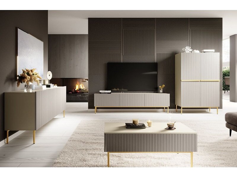 Bobochic Ensemble KASHA avec Meuble TV 200 cm Buffet 4 portes 200 cm pieds or beige